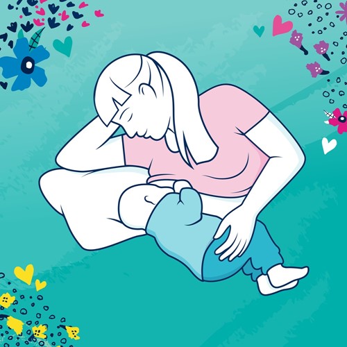 Ideal for nighttime feeds or when you need to rest while breastfeeding, this position involves lying down on your side with your baby facing you. This position may also be more comfortable if you are recovering from a C-section or an episiotomy and will be relaxing for you both.